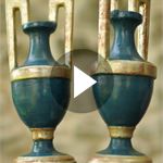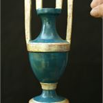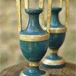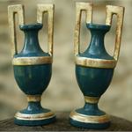 Coppia di "palmette" in legno di noce, laccate e meccate