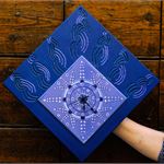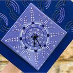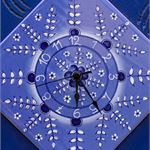Orologio da parete in maiolica, applicato su cornice lignea blu