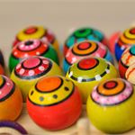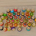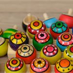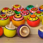 Tornita in legno di faggio, acero o carpino; dipinta a mano.