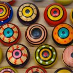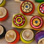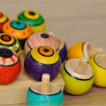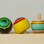 Questa trottola è caratterizzata da una "geometria" particolare: grazie alla sua forma, durante la rotazione, si capovolge su sé stessa, mostrando i colori del suo punto di appoggio.